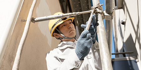 ビルや橋梁、倉庫や発電所など、様々な構造物の建設に必要となる、足場・安全設備を設置します。外壁の塗装や補修のための工事にも必要となります。当然足場の解体も含まれます。