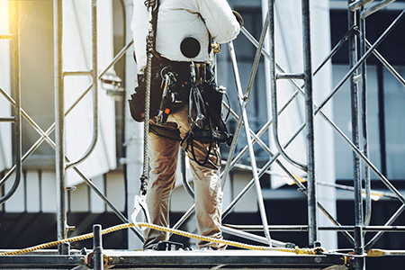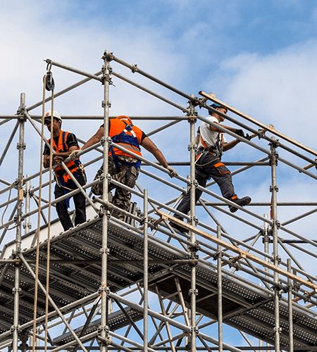 ビルや橋梁、倉庫や発電所など、様々な構造物の建設に必要となる、足場・安全設備を設置します。外壁の塗装や補修のための工事にも必要となります。当然足場の解体も含まれます。