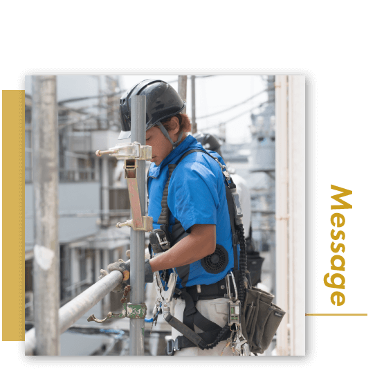 足場工事・仮設工事は現場が終わればすべて撤去されてしまいます。ですが足場や仮設物が無ければ現場は成り立ちません。私たちは他業種の職人さんたちが使いやすいように、現場が円滑に安全に進むようにと願いながら仕事を行っています。